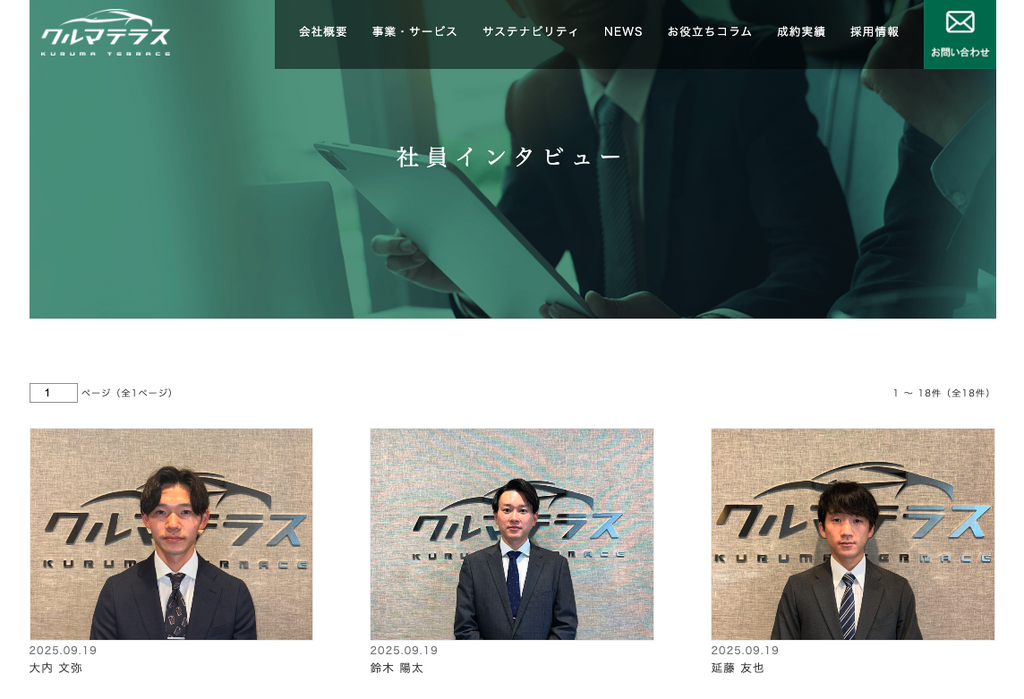 2025.09.25 社員インタビューページを更新しました! クルマテラスで働くスタッフの「リアルな声」をお届けする社員インタビューページに、新たなメンバーのインタビュー記事を追加しました!現場で活躍するスタッフの想いや、入社のきっかけ、仕事のやりがいなど、クルマテラスの“中の人”の姿が見えてくる内容となっています。ぜひご覧ください!▶ 社員インタビューはこちらhttps://kuruma-terrace.com/staff/?p=1 ← 次 一覧ページ 前 →